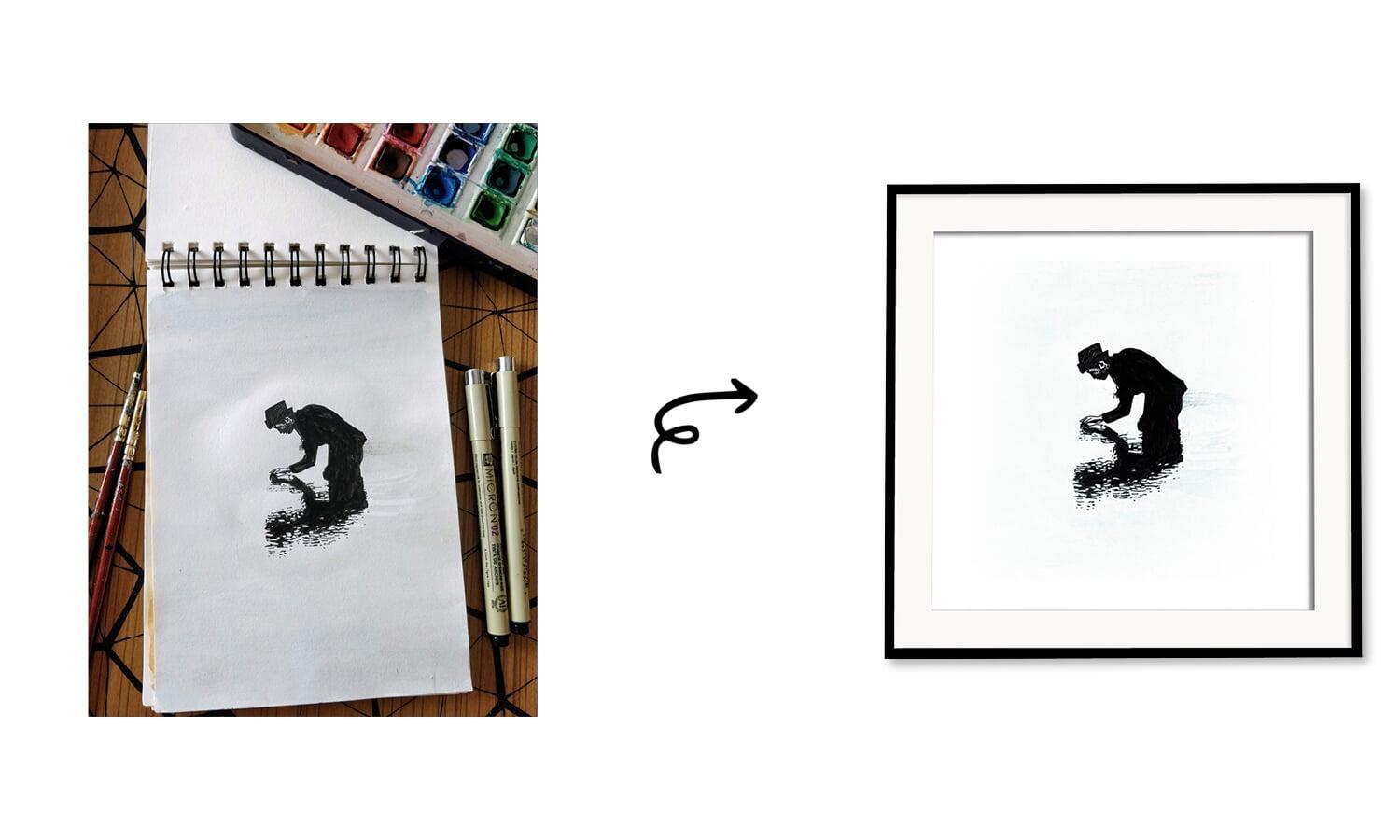 The blend of detailed pen work and the soft, evocative qualities of watercolours creates a visually captivating and emotionally resonant artwork. It invites viewers to ponder the deep philosophical questions about the meaning and significance of life and the way our experiences are mirrored in the world around us.