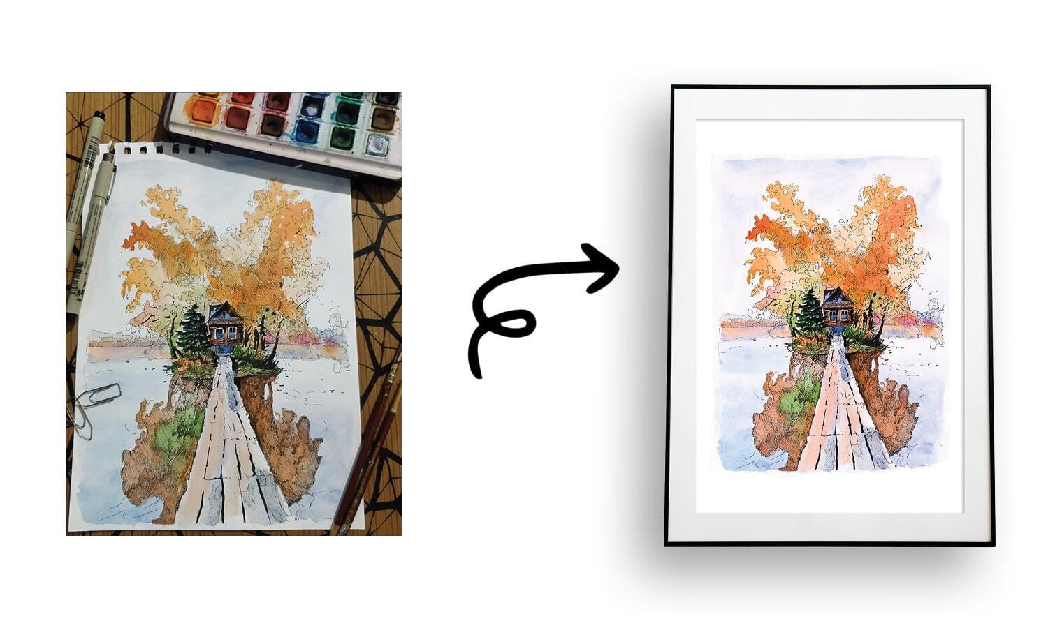 The composition might emphasise the solitude and tranquility of the holiday home, with watercolour elements creating a sense of calm and relaxation. The saying "Solitude is a blessing when used in rarity" incorporated into the painting, serves as a contemplative and philosophical message. It suggests that solitude can be a source of blessing and rejuvenation when experienced in moderation. The combination of the holiday home and the message reinforces the idea of finding solace and peace in moments of quiet retreat. The blend of detailed pen work and the serene, natural qualities of watercolours creates a visually calming and conceptually reflective artwork. It invites viewers to appreciate the beauty of solitude and the rejuvenating power of nature.