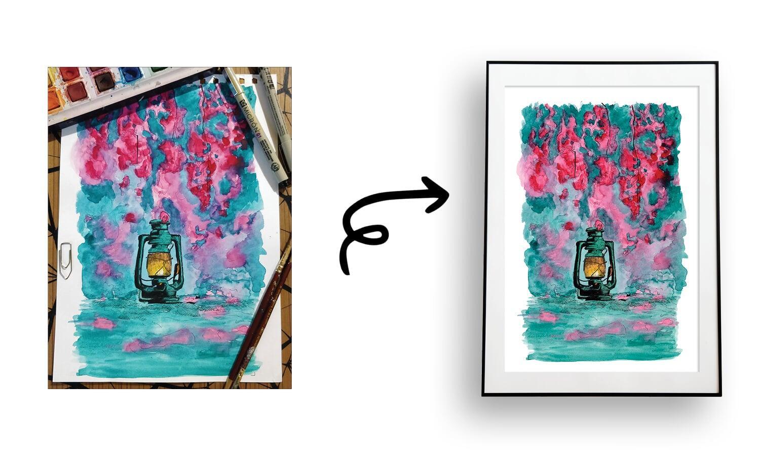 The composition might emphasise the play of light and shadow, with the lamp casting a radiant pool of light in a dim environment. The saying "Everything is black & white, without light" incorporated into the painting, serves as a metaphorical and contemplative message. It implies that light is not only a source of illumination but also a metaphor for clarity, understanding, and perspective. Without light, the world appears monochromatic and lacking depth. The combination of the light lamp and the message reinforces the idea of the profound impact of light in our perception of the world. The blend of detailed pen work and the soft, evocative qualities of watercolours created a visually captivating and emotionally resonant artwork. It inspires viewers to consider the importance of light in our lives, not only as a source of physical illumination but also as a symbol of knowledge, insight, and enlightenment.