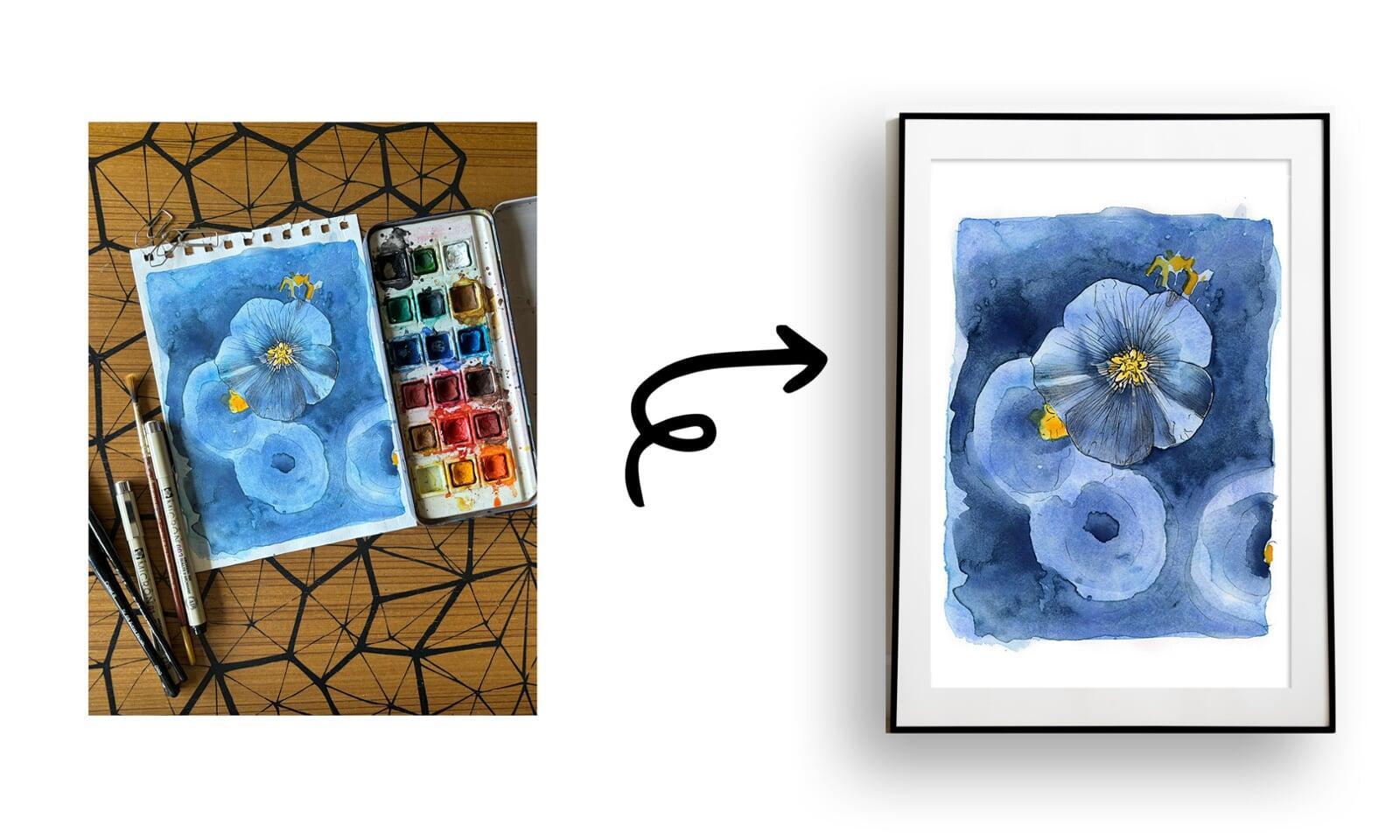 A white or soft silver frame with a generous white mount would bring out the contrast of the blue tones, giving it a floating, ethereal presence on the wall. This piece speaks softly—but deeply—to the soul.