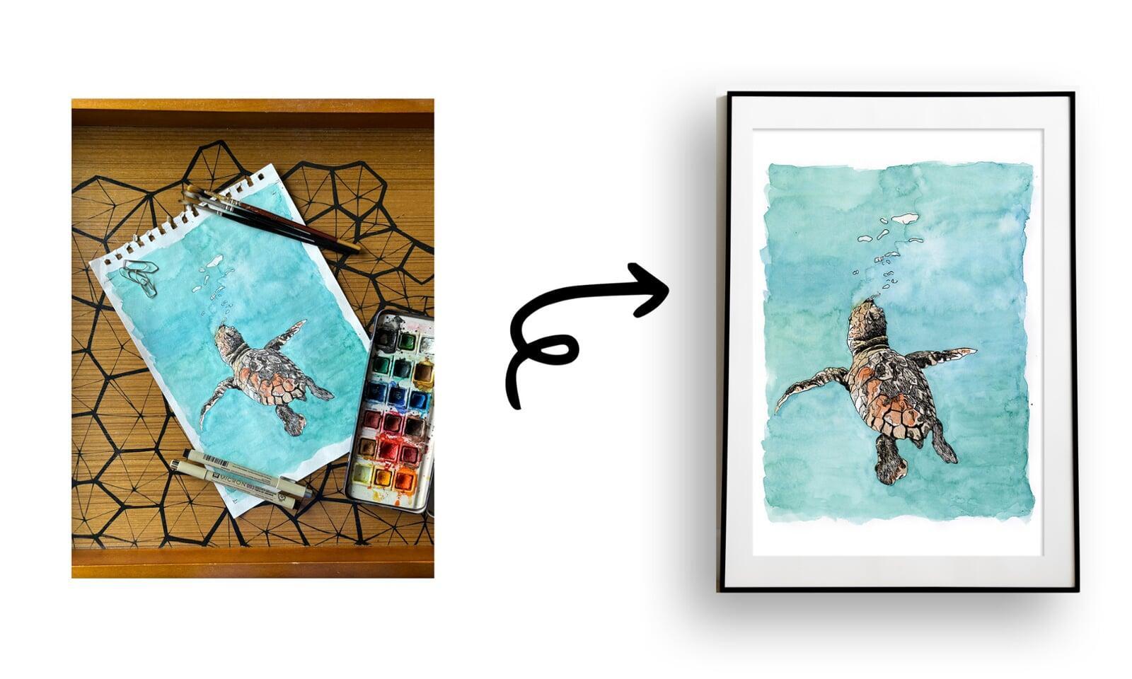 Framing this artwork with a soft white mount and a pale wood or matte black frame will elevate its gentle tones without overpowering the delicate textures. To bring out the aquatic feel, it could also be hung alongside other marine or minimal nature-themed pieces in a gallery wall layout.
