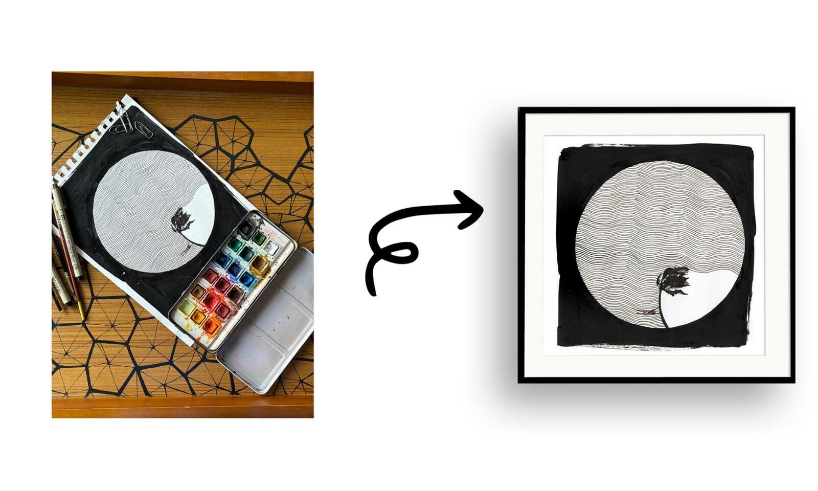This collection of minimalist pen art and watercolour paintings explores the profound relationship between humanity and nature through stark contrast and symbolic elements. Using precise linework and fluid watercolour textures, each piece draws viewers into a contemplative space—where small gestures, moments, and symbols reflect deeper truths.
