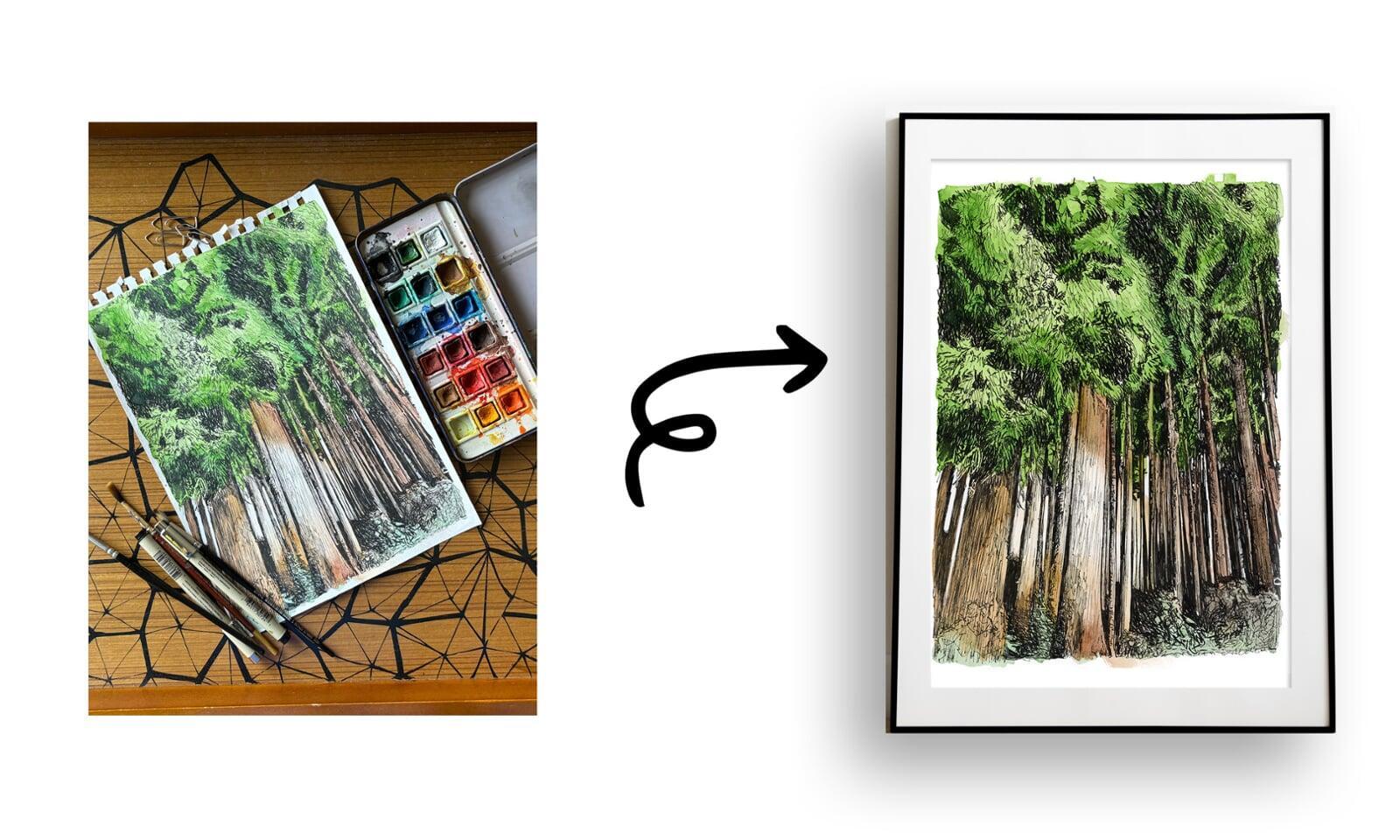 Framing it with natural wood or reclaimed timber, and using a linen or hemp-textured mat, will harmonize with its earthy tones and amplify its environmental soul. Placing it near soft, natural light—like beside a window or under a skylight—will allow the greens to glow and deepen its immersive quality. This piece, in both image and word, quietly reminds us that every great thing starts small, and that from the humblest seed, infinite forests may rise.